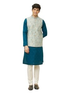 Pair it with polished black loafers and a sleek watch for a complete, dashing look that stands out at weddings, family gatherings, and festive celebrations. With Manyavar’s reputation for quality and style, this outfit ensures you look your absolute best on every occasion.