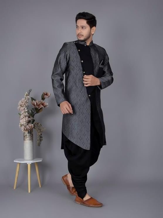 Make every celebration memorable with this Sherwani Kurta Pajama set by Greenwave Fashion. The Sherwani is crafted from 100% heavy jacquard fabric, paired with a soft cotton pajama, offering the perfect blend of luxury and comfort. Specially handcrafted by skilled artisans, it brings out the true essence of Indian tradition while keeping you stylish and confident.